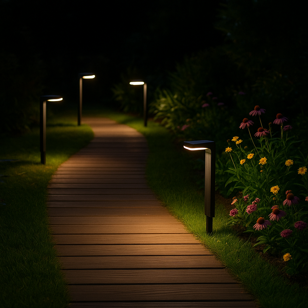 Design resistente e impermeabile; struttura in ABS+PC con protezione IP65, ideale per giardini e vialetti. Dimensioni: 573x162x90 mm