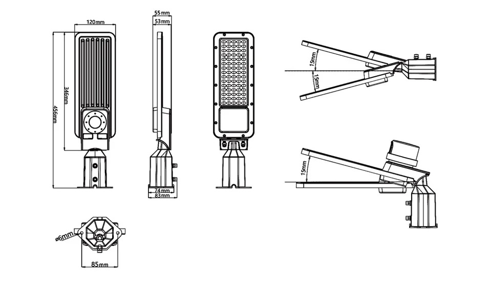 Uno dei suoi punti di forza è l’inclinazione regolabile fino a 90°, che consente di orientare la luce in base alle esigenze di illuminazione, migliorando la versatilità d’uso. Si installa facilmente su pali (diametro 60mm)  e supporti (non inclusi), risultando un’ottima alternativa ai tradizionali sistemi di illuminazione stradale.