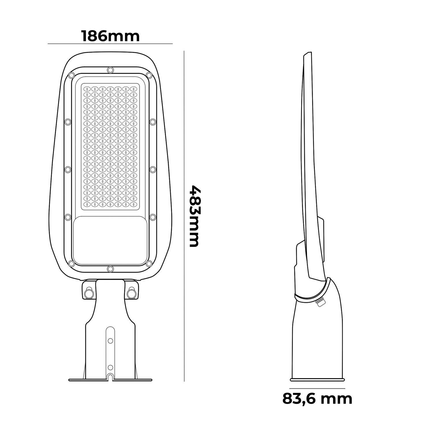 Uno dei suoi punti di forza è l’inclinazione regolabile a 90° - 120°, che consente di orientare la luce in base alle esigenze di illuminazione, migliorando la versatilità d’uso. Si installa facilmente su pali (diametro 66mm)  e supporti (non inclusi), risultando un’ottima alternativa ai tradizionali sistemi di illuminazione stradale.