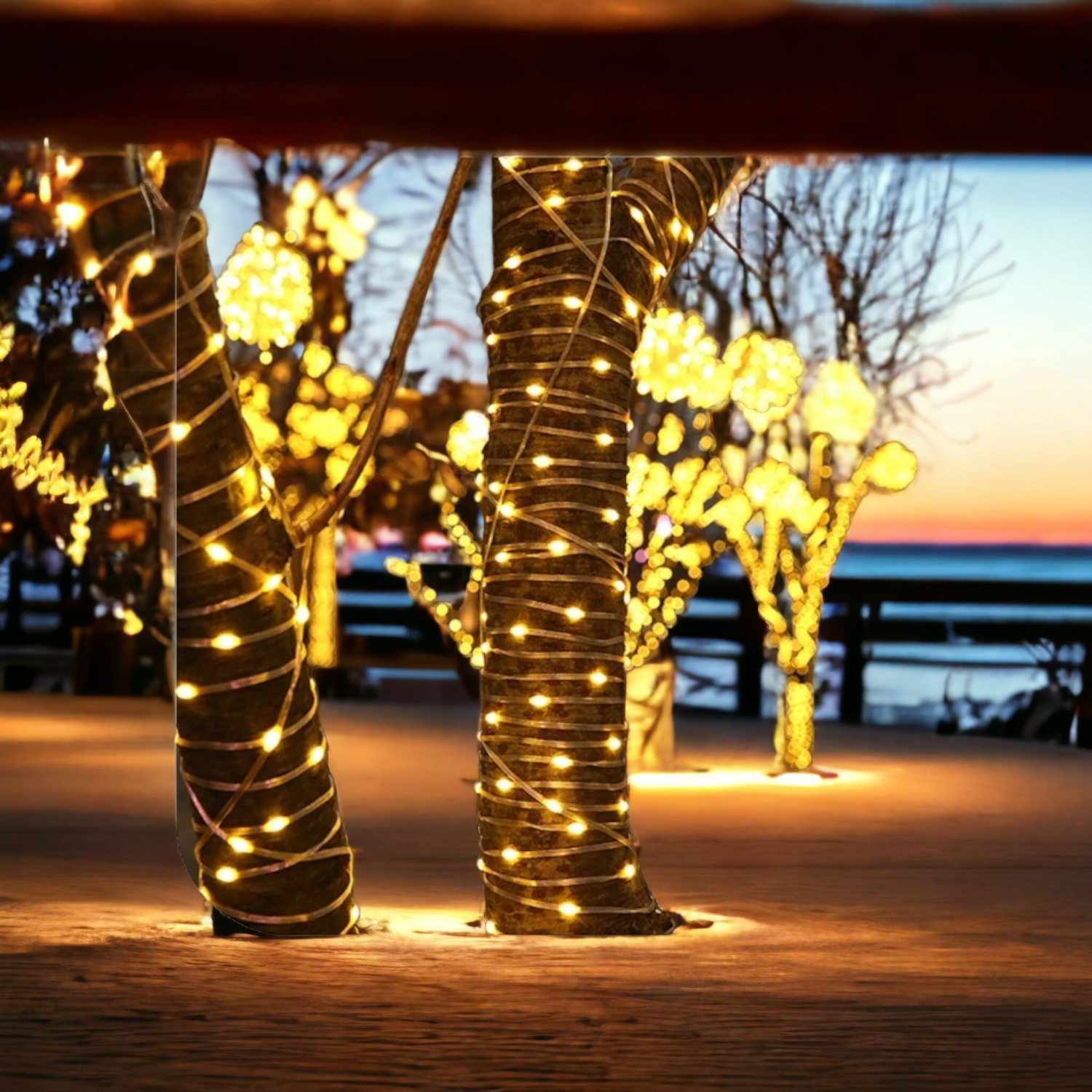 Trasforma il tuo spazio esterno in un luogo magico con la nostra Catena Luminosa Solare Esterna. Questa catena luminosa da 30 metri è dotata di 300 LED a luce calda che creano un'atmosfera natalizia perfetta. Che tu stia decorando il giardino, il patio, il balcone o la veranda, queste luci aggiungeranno un tocco di magia a qualsiasi ambiente, tutto l'anno. La nostra catena luminosa è alimentata sia dall'energia solare che dalla ricarica USB. Durante il giorno, il pannello solare integrato assorbe l'energia solare per alimentare le luci durante la notte. Inoltre, è possibile ricaricarle tramite USB per illuminare anche nelle serate nuvolose. Questo doppio metodo di alimentazione ti offre la massima flessibilità. Grazie al telecomando incluso, hai il controllo completo delle luci. Puoi accenderle e spegnerle, regolare la luminosità e impostare un timer di spegnimento a 4, 6 o 8 ore. Con diverse modalità di intermittenza tra cui scegliere, puoi personalizzare l'illuminazione in base all'atmosfera desiderata. La nostra catena luminosa è costruita per durare. Con una copertura in silicone che offre una protezione di grado IP65, queste luci sono resistenti alle intemperie e possono essere utilizzate sotto la pioggia. Puoi installarle a terra con il picchetto incluso o appenderle con il gancio dedicato. Con un fascio luminoso a 360°, queste luci creano un'atmosfera accogliente e magica che lascerà un'impressione indelebile.Le luci LED a luce calda a 3000K aggiungono calore e comfort all'ambiente, perfette per riunioni in giardino, serate romantiche o semplicemente per creare un'atmosfera festiva. Non limitare l'uso di queste luci solo al periodo natalizio. Grazie alla loro versatilità, possono essere utilizzate durante tutto l'anno per creare atmosfere diverse. Crea un'atmosfera festosa o un'illuminazione vivace quando desideri rilassarti all'aperto.
