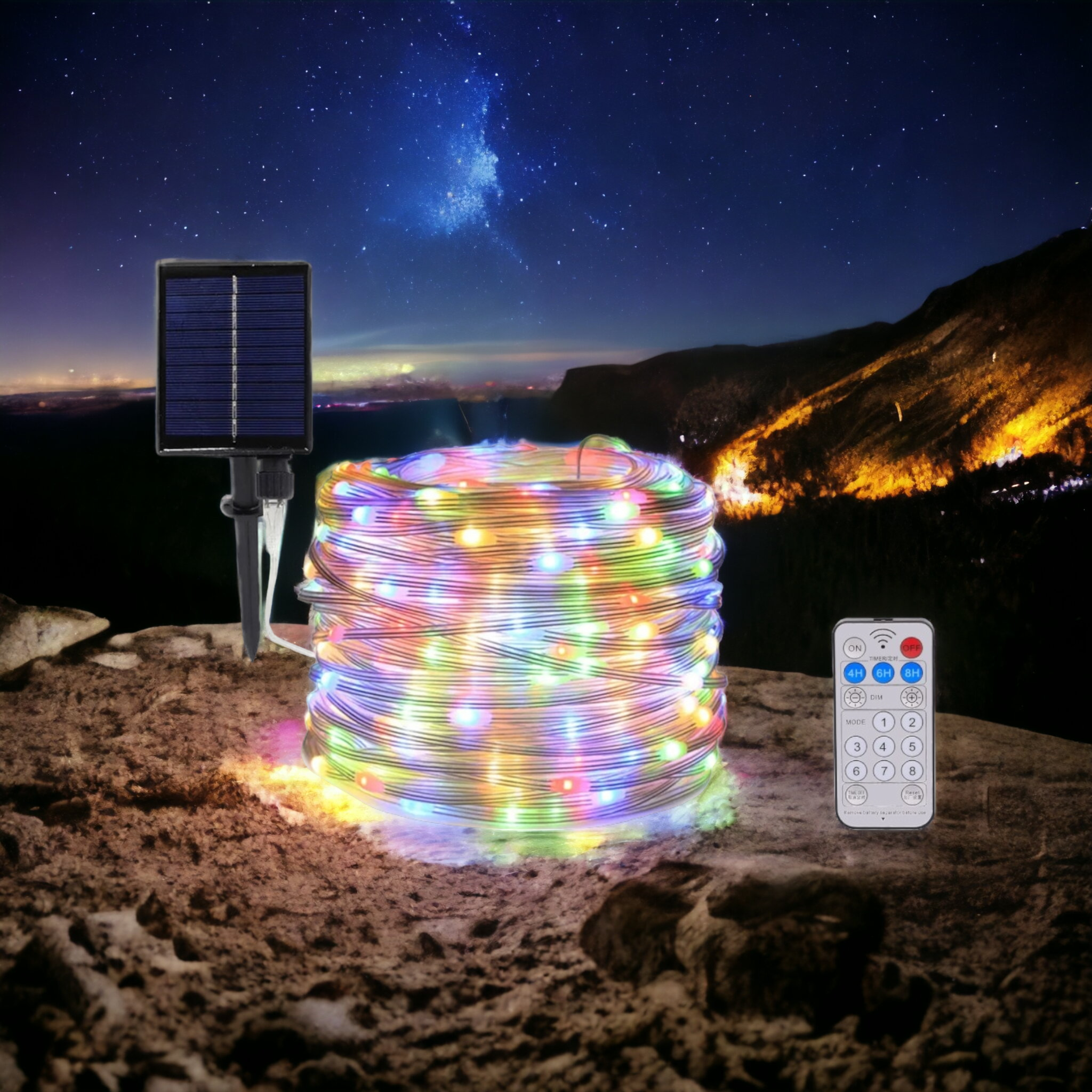 Trasforma il tuo spazio esterno in un luogo magico con la nostra Catena Luminosa Solare Esterna. Questa catena luminosa da 30 metri è dotata di 300 LED colorati che creano un'atmosfera natalizia perfetta. Che tu stia decorando il giardino, il patio, il balcone o la veranda, queste luci aggiungeranno un tocco di magia a qualsiasi ambiente, tutto l'anno. La nostra catena luminosa è alimentata sia dall'energia solare che dalla ricarica USB. Durante il giorno, il pannello solare integrato assorbe l'energia solare per alimentare le luci durante la notte. Inoltre, è possibile ricaricarle tramite USB per illuminare anche nelle serate nuvolose. Questo doppio metodo di alimentazione ti offre la massima flessibilità. Grazie al telecomando incluso, hai il controllo completo delle luci. Puoi accenderle e spegnerle, regolare la luminosità e impostare un timer di spegnimento a 4, 6 o 8 ore. Con diverse modalità di intermittenza tra cui scegliere, puoi personalizzare l'illuminazione in base all'atmosfera desiderata. La nostra catena luminosa è costruita per durare. Con una copertura in silicone che offre una protezione di grado IP65, queste luci sono resistenti alle intemperie e possono essere utilizzate sotto la pioggia. Puoi installarle a terra con il picchetto incluso o appenderle con il gancio dedicato. Con un fascio luminoso a 360°, queste luci creano un'atmosfera accogliente e magica che lascerà un'impressione indelebile. Le luci LED colorate aggiungono vivacità e gioia all'ambiente, perfette per riunioni in giardino, serate festive o semplicemente per creare un'atmosfera festosa. Non limitare l'uso di queste luci solo al periodo natalizio. Grazie alla loro versatilità, possono essere utilizzate durante tutto l'anno per creare atmosfere diverse. Crea un'atmosfera festosa o un'illuminazione vivace quando desideri rilassarti all'aperto.