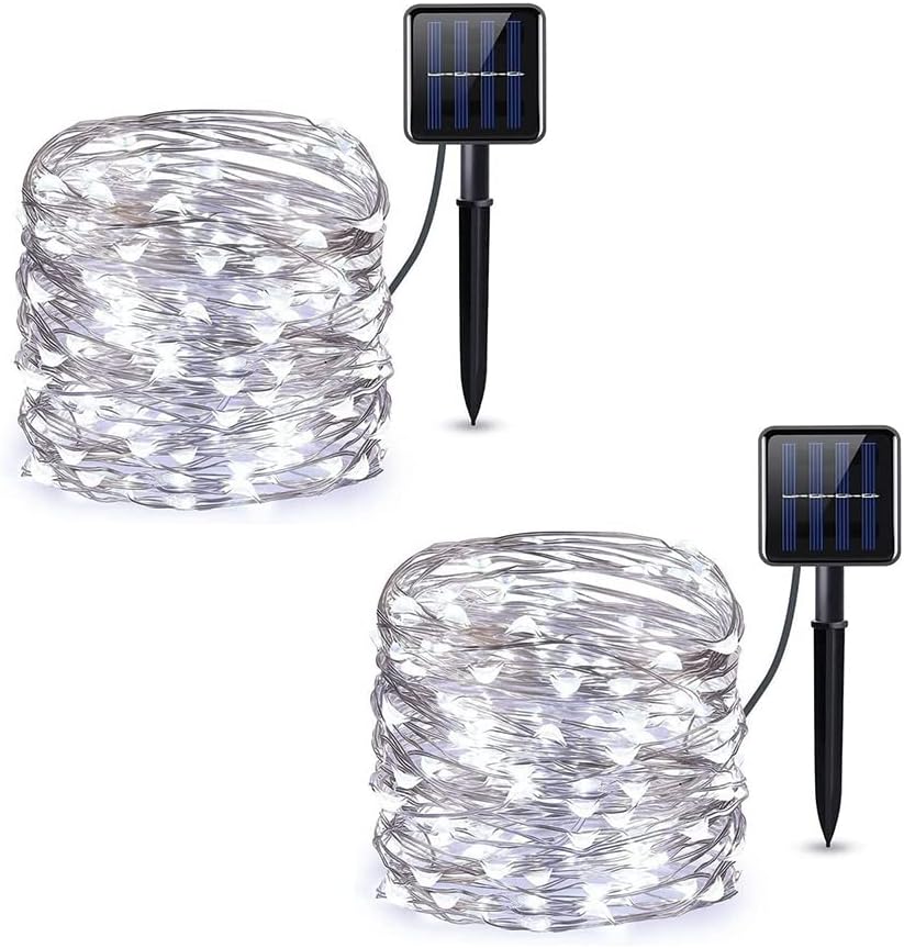 2 pezzi Catena Luminosa Solare da 10 Metri con 100 Micro LED per Decorazioni Natalizie luci di natale Bianco freddo