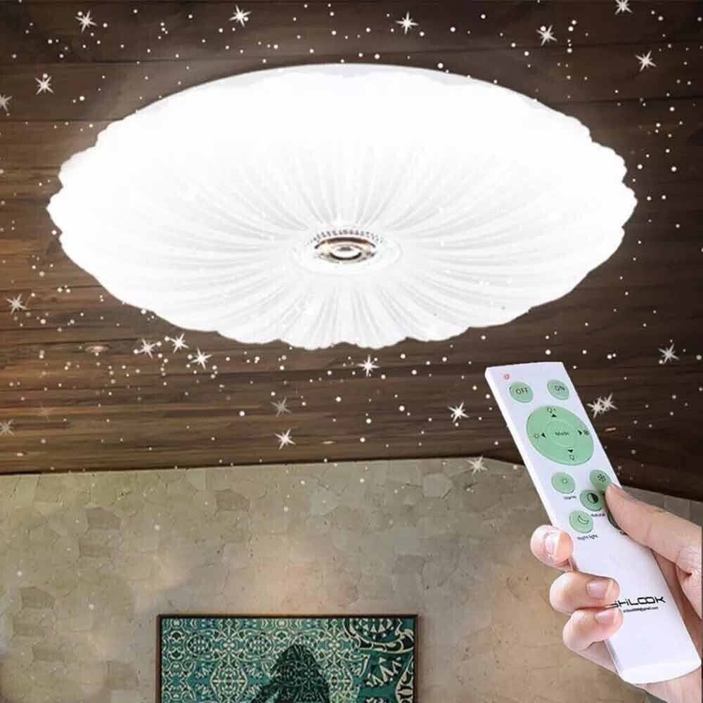 Plafoniera bluetooth a led da interno moderna a soffitto forma tonda lampada adatta per camera da letto salone soggiorno solotto cucina 46W Effetto Stellato