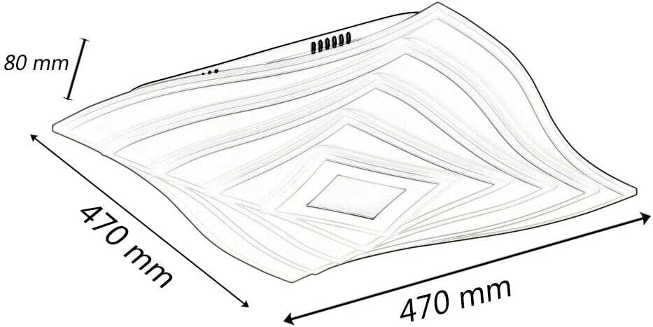 Dimmerabile Fascio luminoso: 300° Materiale di composizione: metallo+acrilico Colore prodotto: bianco Tempo di innesco: 0.1 secondi Grado di protezione: IP20 Dimensioni Lunghezza: 470 mm Larghezza: 470 mm Spessore: 80 mm.