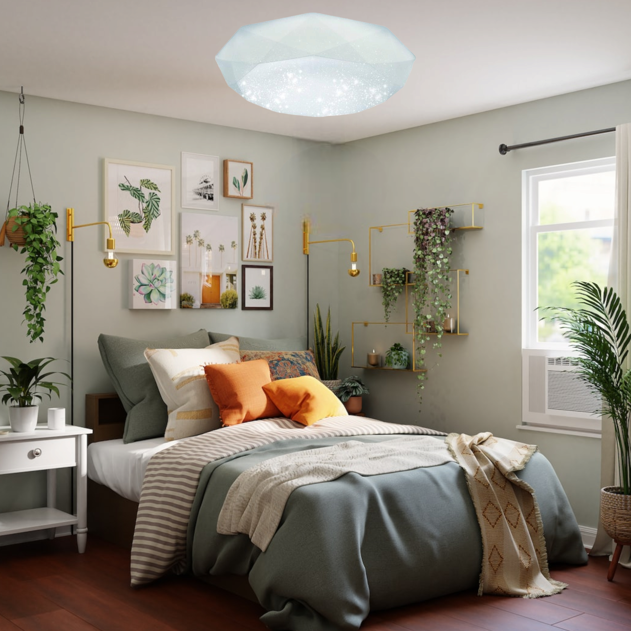 L'effetto stellato, unico nel suo genere, rende questa plafoniera un'opzione perfetta per chi cerca qualcosa di speciale. Un tocco di magia si diffonde nell'ambiente quando la plafoniera è accesa, creando un'atmosfera incantata e rilassante.