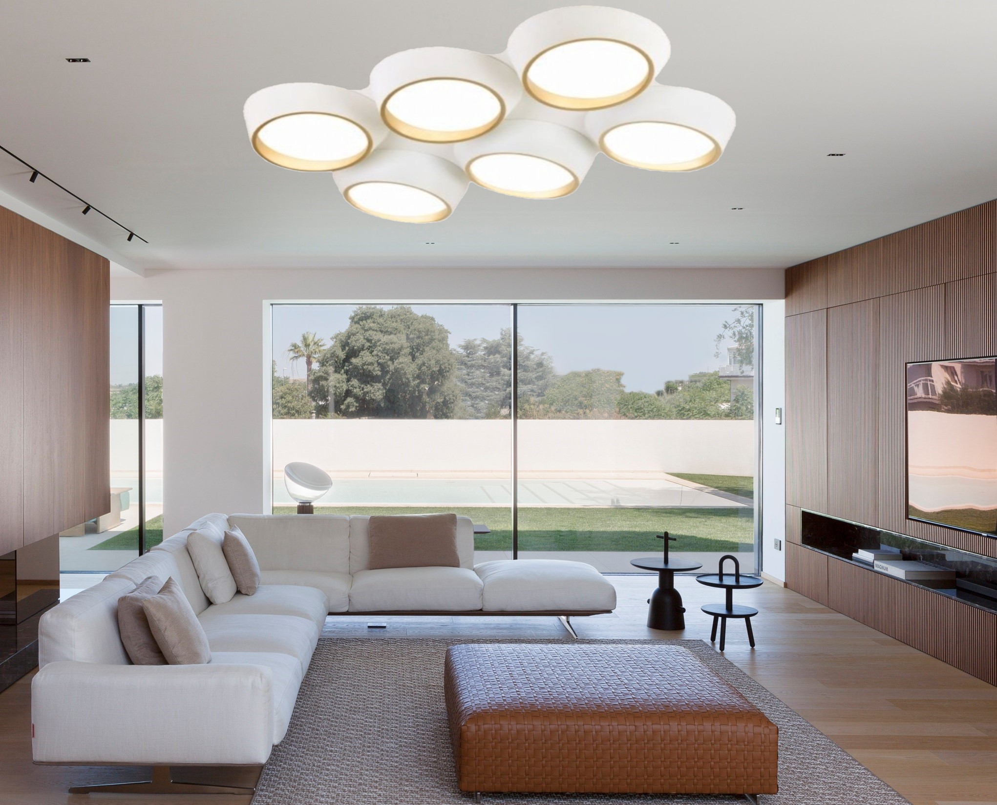 Plafoniera a soffitto di colore bianca con illuminazione led dalla potenza di 120W dallo stile moderno e minimalista . I suoi lineamenti geometrici lo rendono una fonte luminosa ideale per valorizzare ambienti di casa come salotto, camera da letto, cucina e studio, ma anche spazi pubblici come negozi, ristoranti e uffici.