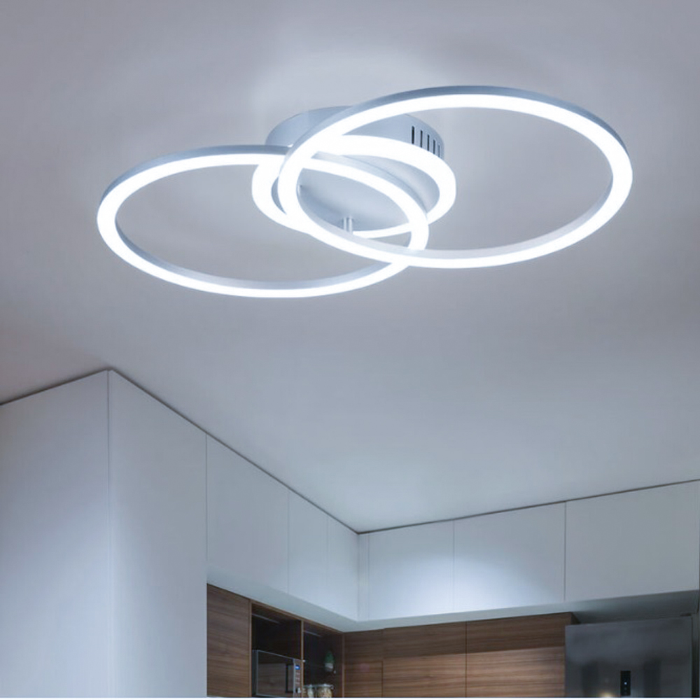 Plafoniera a led interno moderna soffitto tonda lampadario camera da letto salone locali commerciali 42W 2 cerchi Luce fredda