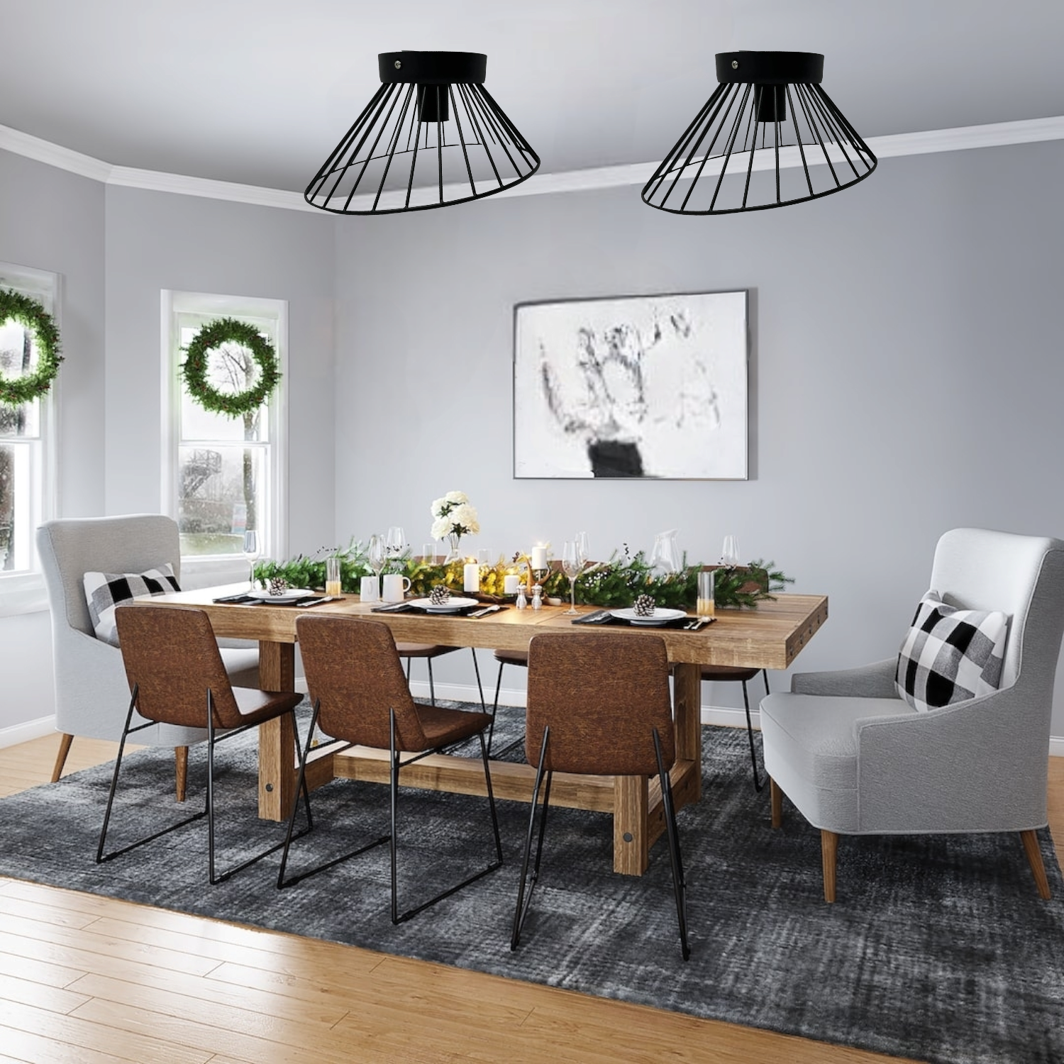 Il portalampada a soffitto E27 è un'elegante e moderna soluzione di illuminazione che aggiunge un tocco di stile contemporaneo all'ambiente interno della tua casa. Realizzato in metallo di alta qualità, questo lampadario si presenta con un elegante colore nero, che si adatta perfettamente a una vasta gamma di stili di arredamento.
