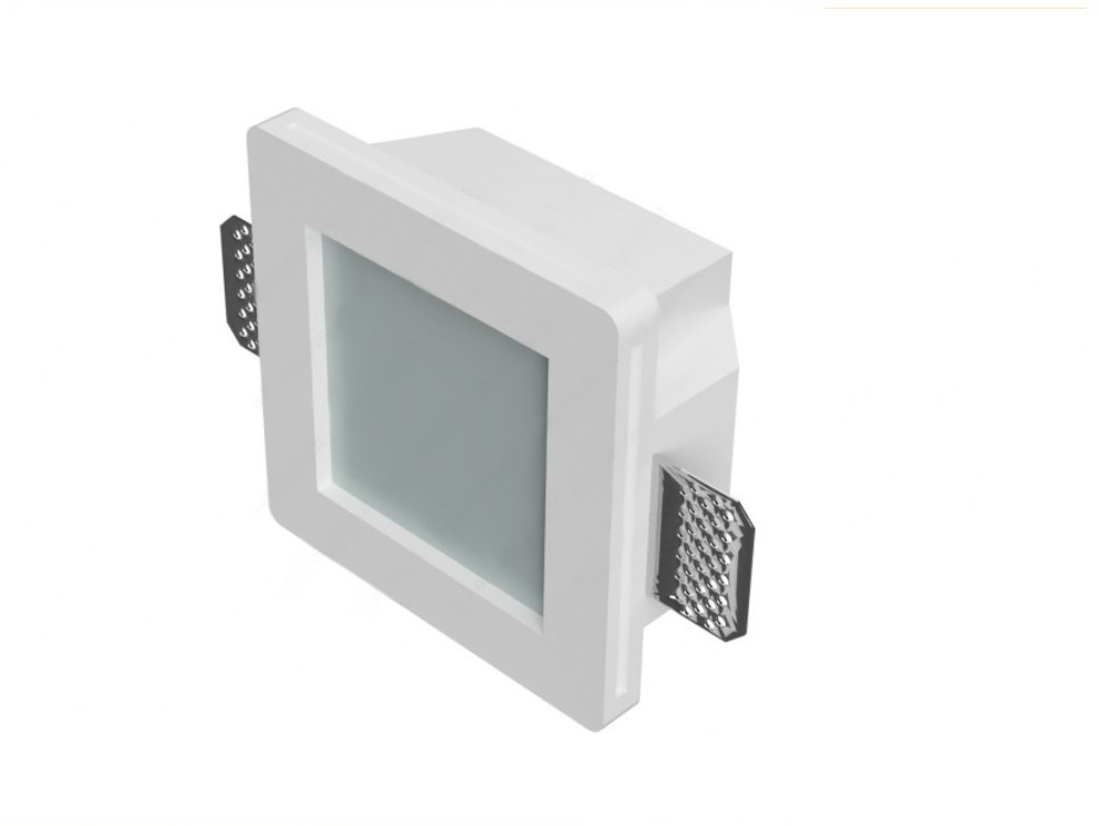 Design elegante e discreto – Portafaretto da incasso in gesso con vetro satinato per un’illuminazione raffinata e uniforme.
