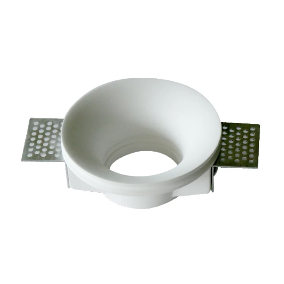 Portafaretto da incasso in gesso a scomparsa, compatibile con faretti GU10, foro incasso 105mm, design minimalista per soffitti in cartongesso