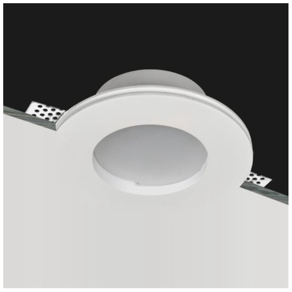 Il portafaretto in gesso da incasso a scomparsa è la soluzione ideale per un'illuminazione raffinata e moderna. Con un diametro di 120mm e un'altezza di 65mm, è progettato per un foro di incasso da 125mm. Il design minimalista si integra perfettamente nel soffitto, offrendo un’illuminazione diffusa grazie al vetro opaco, che elimina fastidiosi riflessi. Compatibile con faretti GU10, permette di scegliere la fonte luminosa più adatta alle proprie necessità. La struttura in gesso verniciabile consente una perfetta personalizzazione cromatica. Perfetto per installazioni in cartongesso o muratura, garantisce un effetto estetico pulito e senza elementi visibili.