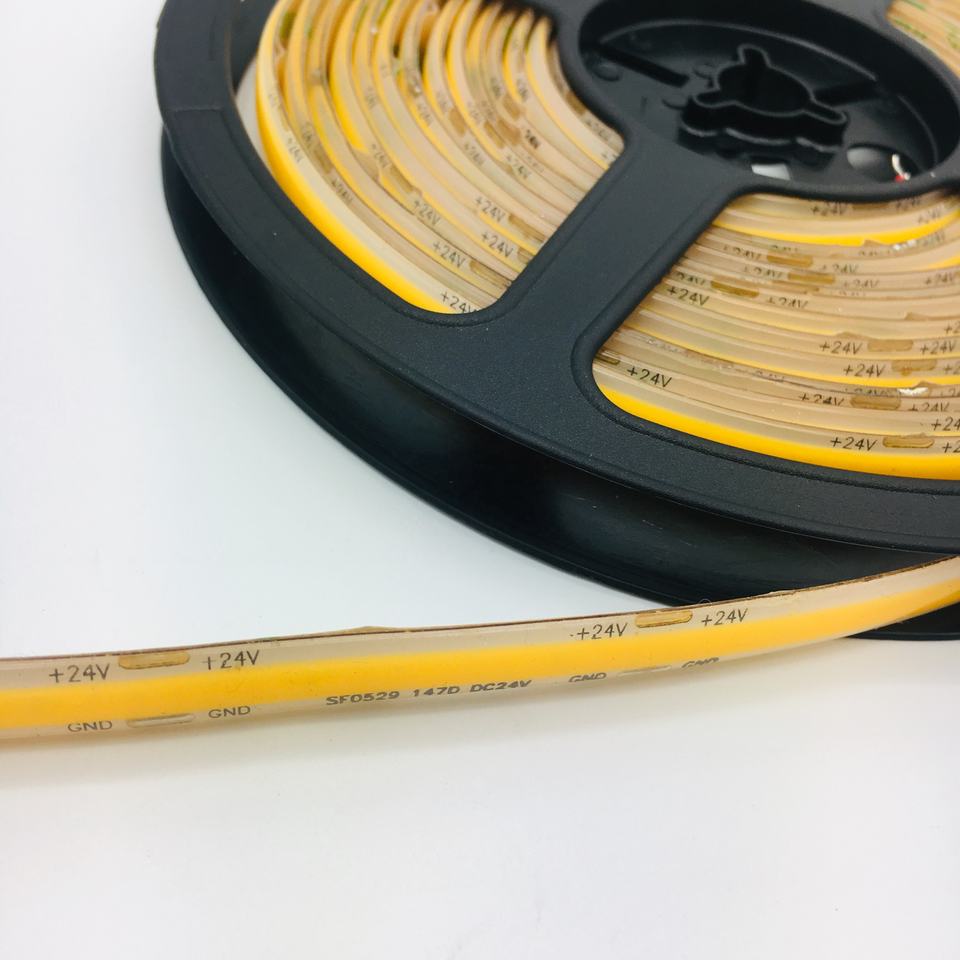 Striscia LED COB flessibile da 5 metri. Ha una tensione DC 12V ed è composta da chip COB led lineare che crea un effetto di luce continua. Ha un fascio luminoso di 180° e flusso luminoso di 1400 lumen per metro. ideale da fissare in profili e barre di alluminio per creare effetti luminosi in ambienti interni. Adatta per decorare interni di abitazioni, pub, bar, ristoranti, hotel, negozi ed in tutti quei posti dove si vuole installare una striscia LED