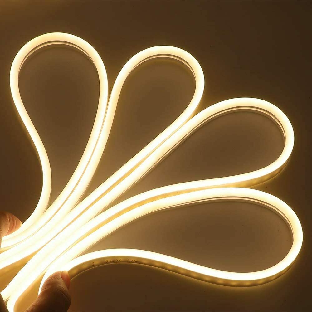 Striscia led neon flessibile impermeabile da esterno e da interno IP65 12V 5 metri tagliabile luce calda 3000K