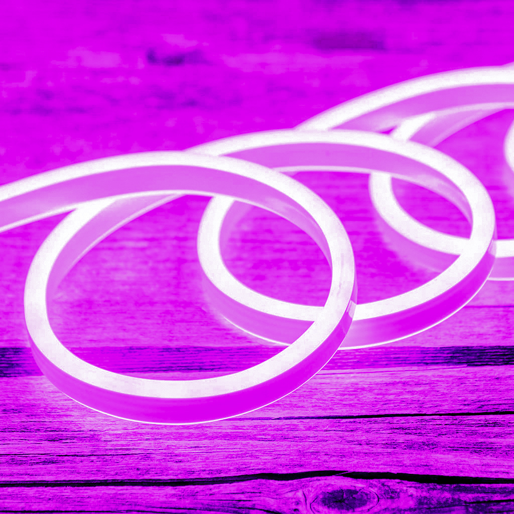Led Neon Flex luce viola, è un sistema luminoso alternativo per quei progetti dove l'utilizzo di una sorgente flessibile diventa indispensabile per non perdere continuità di illuminazione. L'illuminazione uniforme del dispositivo in tutta la sua lunghezza fa si che Led Neon Flex diventi una soluzione altamente decorativa e versatile. Tagliato e curvato facilmente viene installato su qualsiasi tipo di superficie.