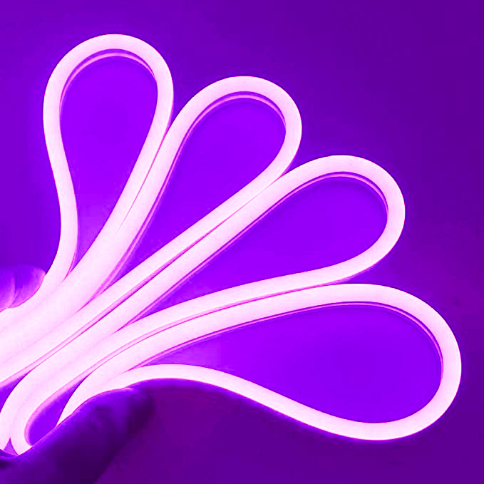 Led Neon Flex luce viola, è un sistema luminoso alternativo per quei progetti dove l'utilizzo di una sorgente flessibile diventa indispensabile per non perdere continuità di illuminazione. L'illuminazione uniforme del dispositivo in tutta la sua lunghezza fa si che Led Neon Flex diventi una soluzione altamente decorativa e versatile. Tagliato e curvato facilmente viene installato su qualsiasi tipo di superficie.