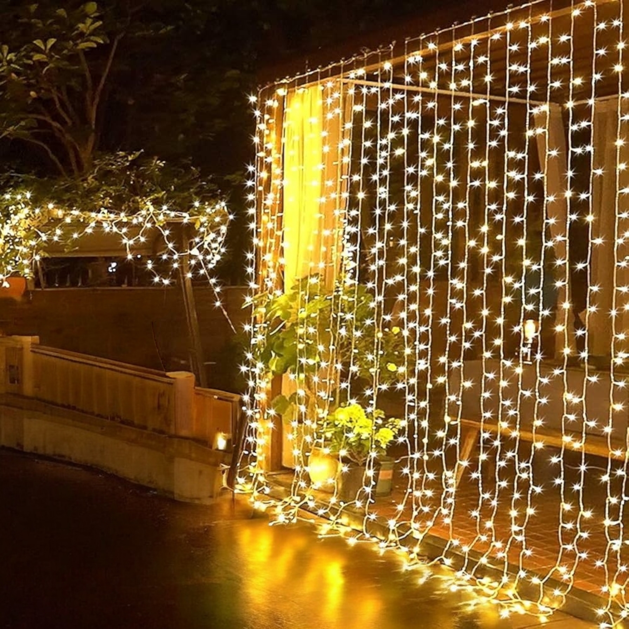 300 LED a Luce Calda e Cavo Trasparente: Illumina gazebi, patii e balconi con una luce accogliente e un effetto tenda elegante, grazie al cavo trasparente che si mimetizza facilmente.