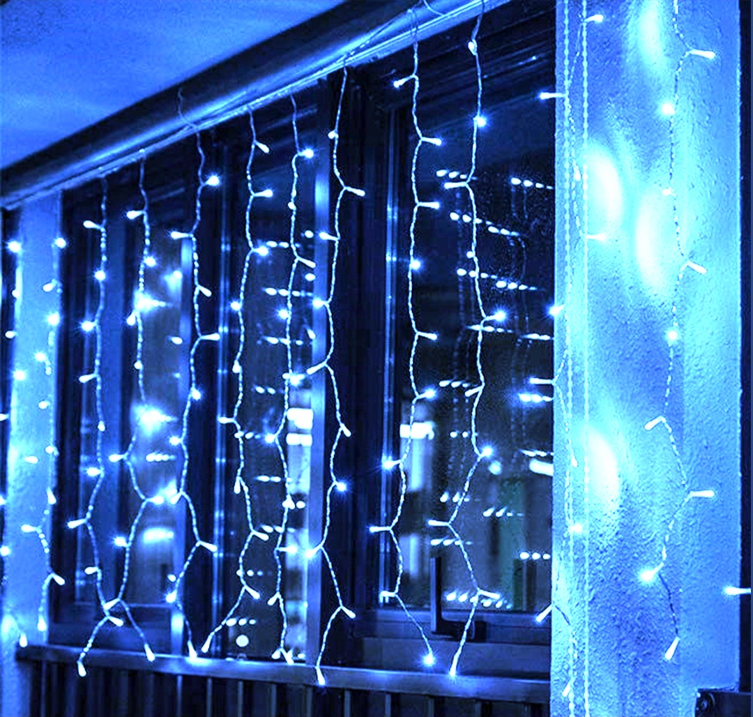 Effetto cascata a LED per un'atmosfera incantevole - 200 LED a luce blu con 180 fissi blu e 20 intermittenti fredda, perfetti per decorare spazi esterni durante festività e serate invernali