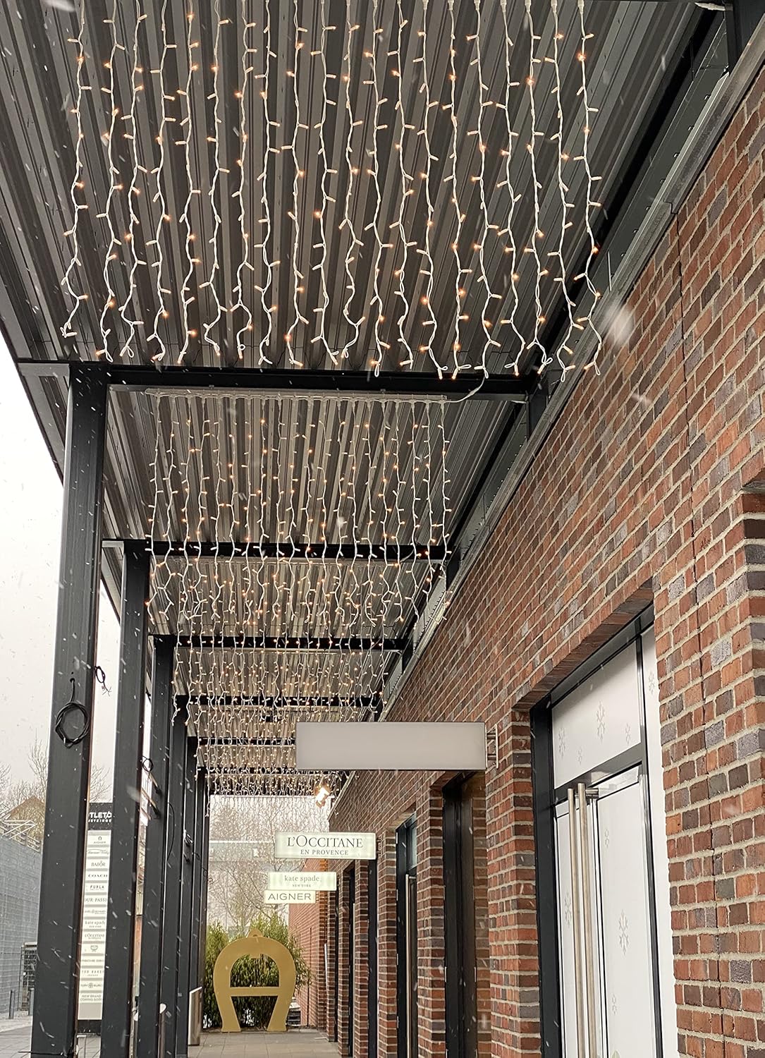 Effetto cascata a LED per un'atmosfera incantevole - 200 LED a luce calda con 180 fissi calda e 20 intermittenti fredda, perfetti per decorare spazi esterni durante festività e serate invernali